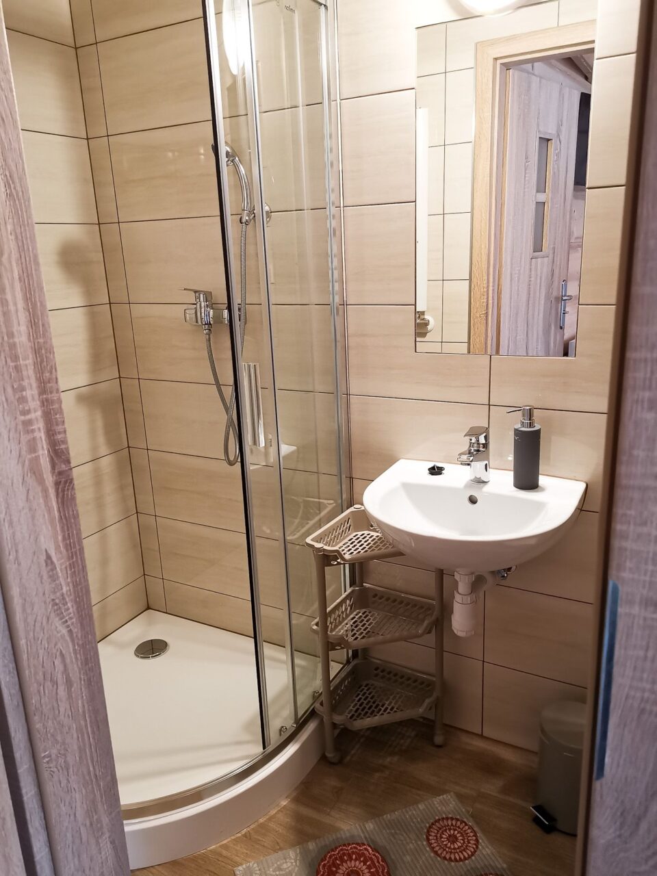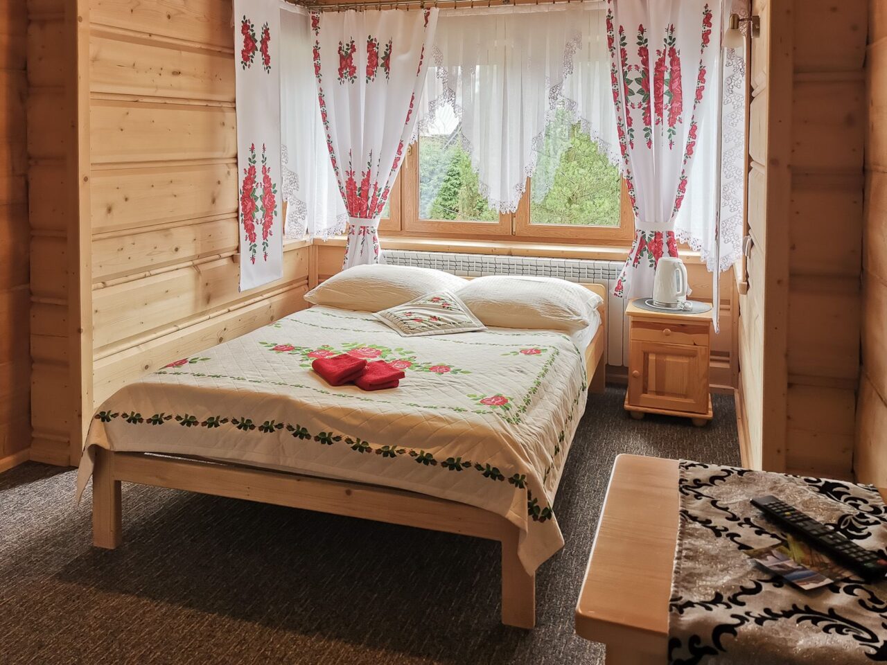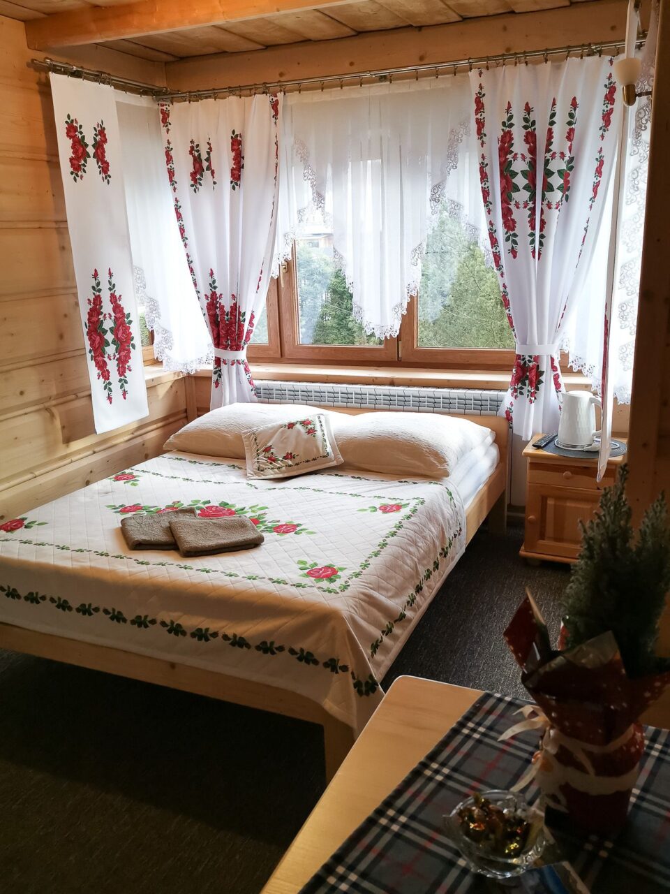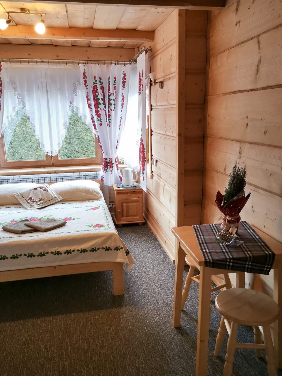 Przytulny pokój 2-osobowy w którym znajduje się podwójne łóżko małżeńskie. Na wyposażeniu pokoju znajduje się lodówka, czajnik, szafa oraz stolik z krzesłami. Łazienka jest wyposażona w prysznic, umywalkę, WC oraz suszarkę do włosów i ręczniki.